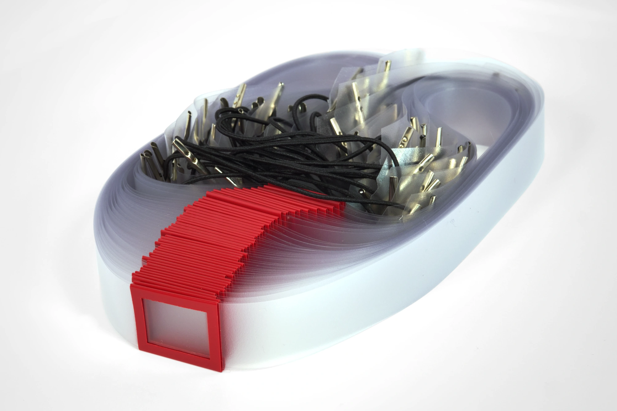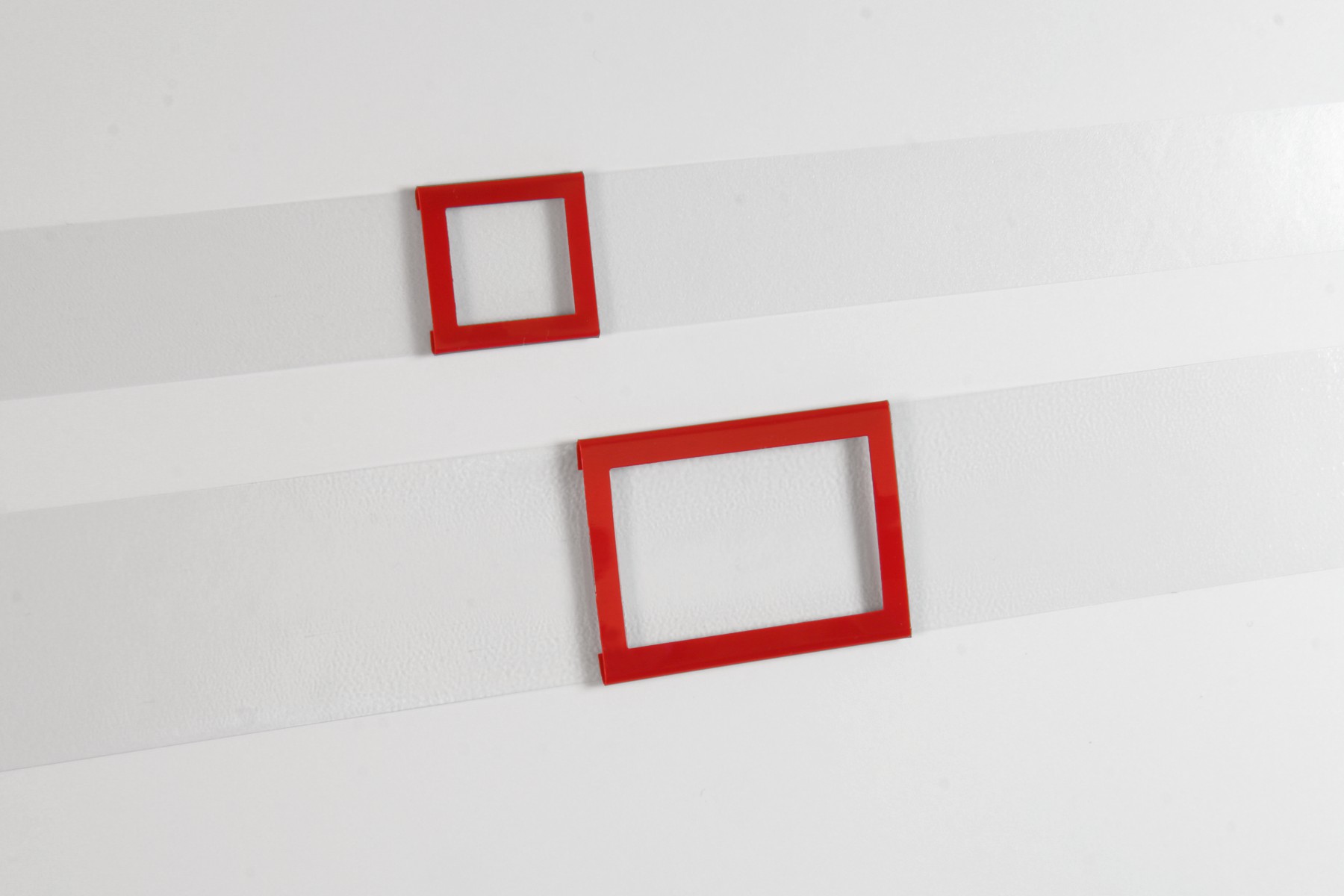 W przypadku okienka z ramkami nakładanymi na pasek, pasek przeźroczysty utrzymujący okienko przechodzi z tyłu ramki. Ramka jest mocowana do paska za pomocą dwóch prowadnic uformowanych w kształt litery U. Okienka nakładane bardzo łatwo przesuwają się po pasku. Ramki naszej produkcji są formowane na gorąco, co zapewnia bardzo dobry kształt, dzięki czemu okienko nie odstaje od kalendarium.